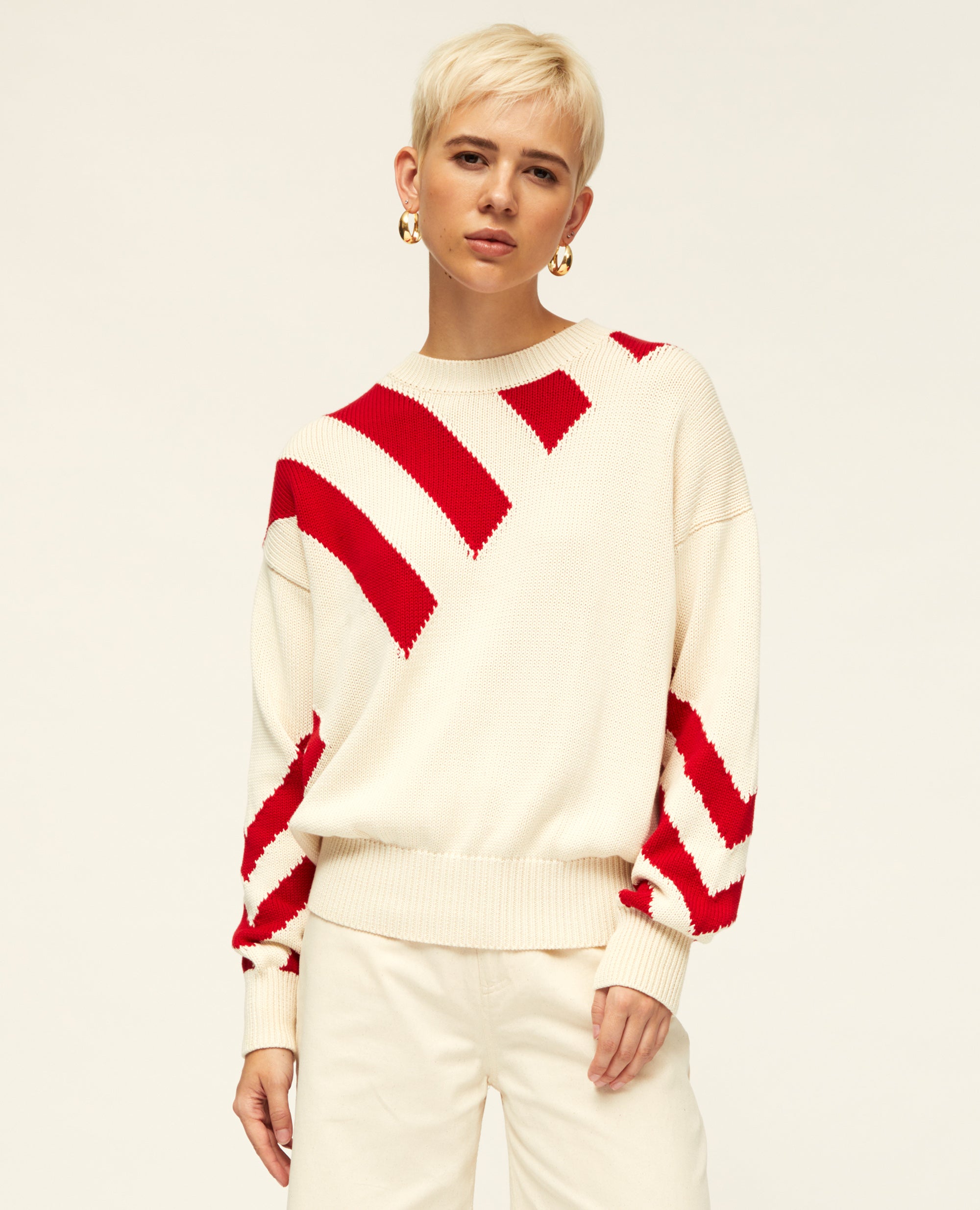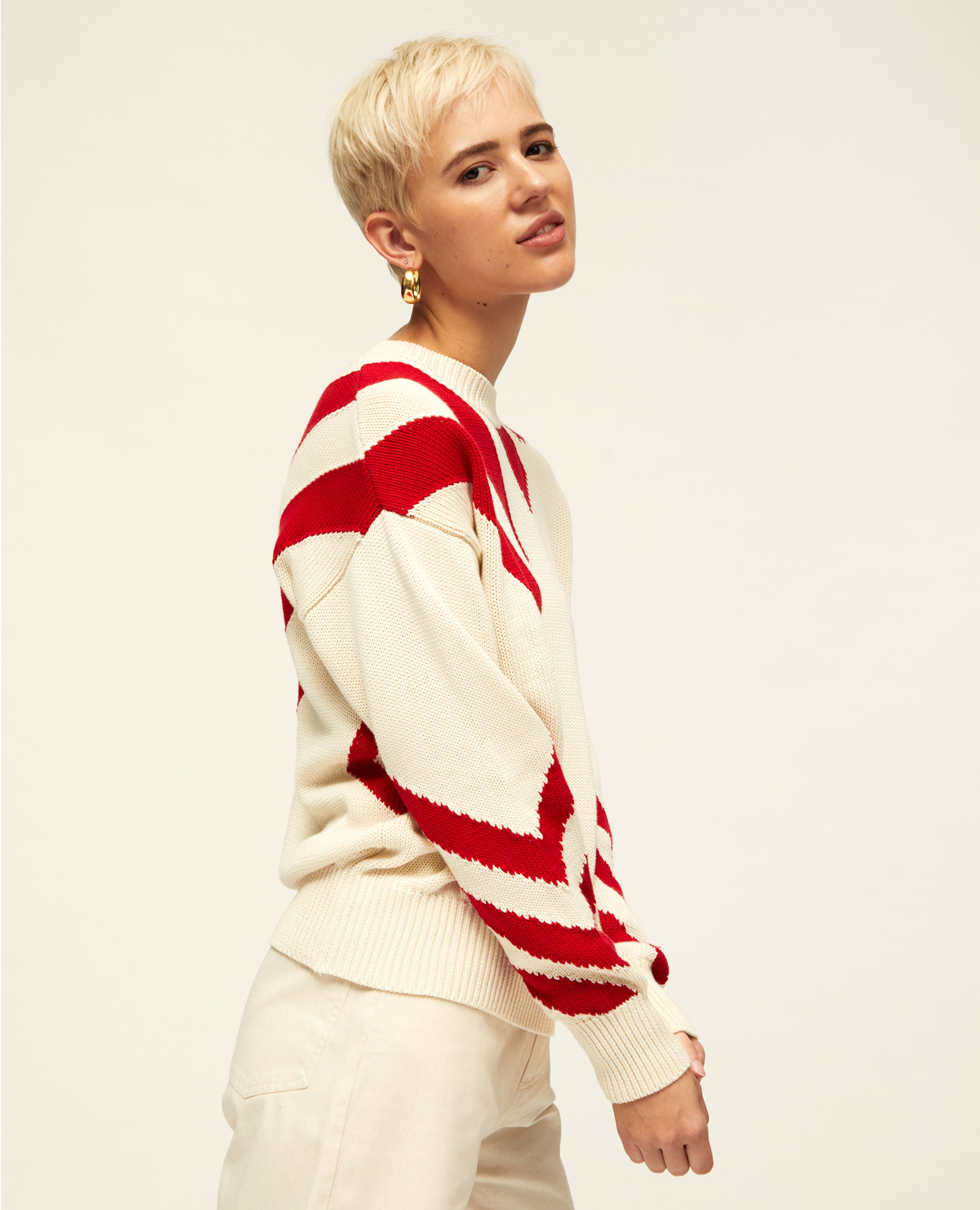 Zig Zag | Graphic Knit | Red & Ecru